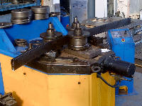 Curvatrice idraulica a tre rulli, per centinare tubi, profilati e travi.